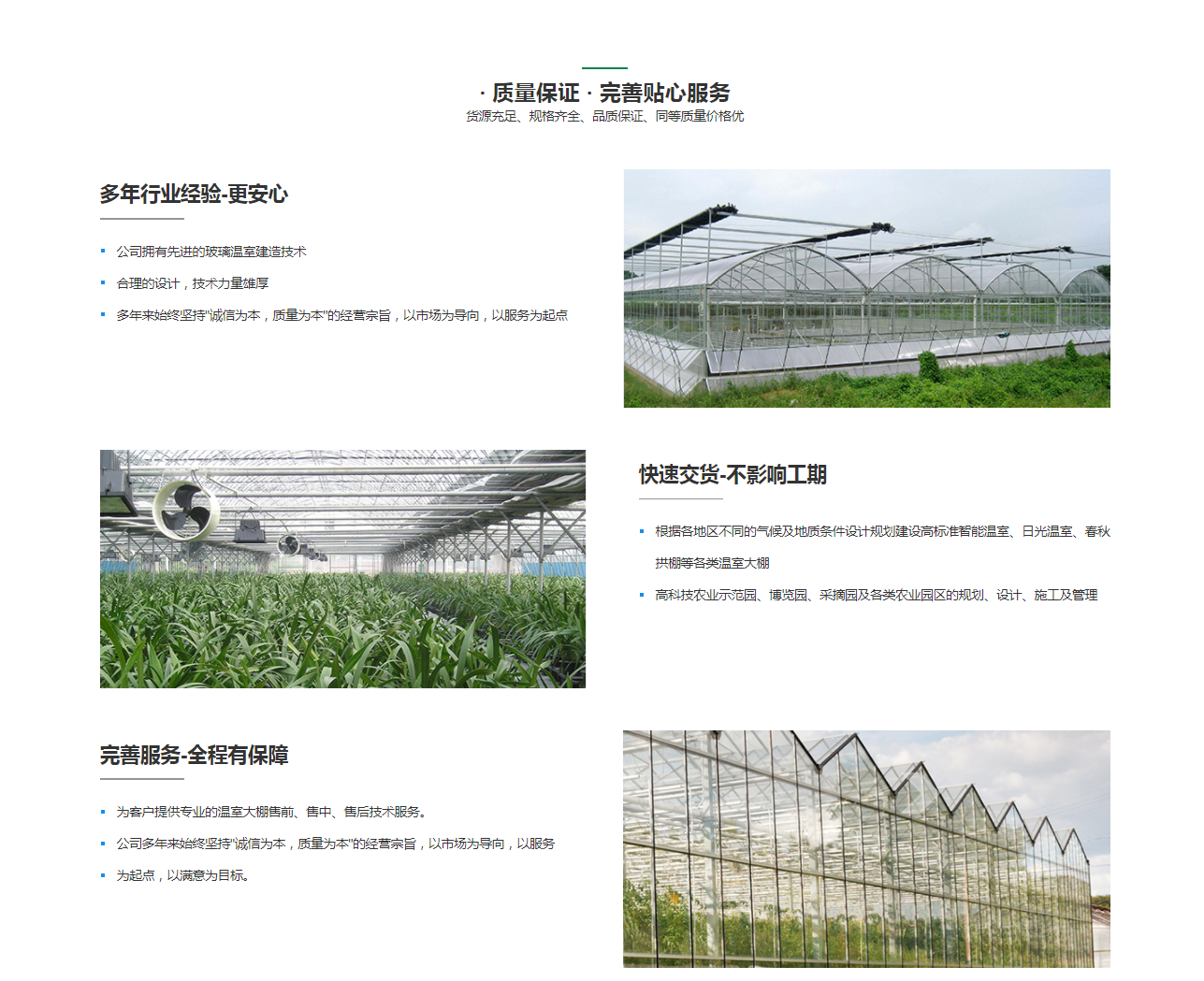 無錫永睿鴻溫室工程有限公司自創辦以來,已在多個城市地區承建了許多的農業示范園區、花卉苗木種植園、家禽水產養殖區、生態餐廳和旅游觀光園等。并以“質量過硬、價格合理、服務周到”贏得了廣大用戶的信賴?! 」局鳡I產品:玻璃溫室、溫室工程、連棟大棚、蔬菜大棚、溫室大棚、花卉大棚、養殖大棚、大棚鋼管、外遮陽大棚、外遮陽連棟大棚等?! 」井a品廣泛用于農業生產、水產養殖、食用菌培養、花卉生產、林業種苗、畜牧等行業,并配有各種規格可供選擇,還可根據客戶要求提供特制結構。 我公司擁有豐富的施工經驗和完善的售后服務,秉承著團隊精神的和始終堅持誠信做人、認真做事、科學管理,不斷開拓創新,超越自我,提升綜合素質的理念,同時公司擁有技術精湛,經驗豐富的技術團隊,將竭誠為各界朋友提供農業設施的設計及相關服務。 公司一貫堅持“品質保證、用戶至上,誠信服務”的宗旨,憑借著高質量的產品,良好的信譽,完善的服務,產品暢銷近三十多個省、市、自治區。歡迎來電咨詢! Since its establishment, Wuxi yongruihong Greenhouse Engineering Co., Ltd. has undertaken to build many agricultural demonstration...